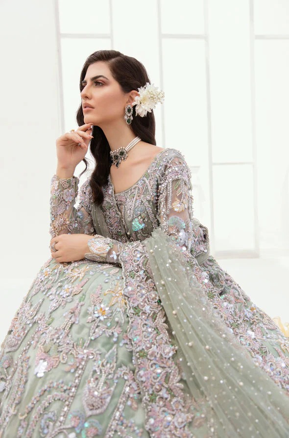 Embellishments~ Intricate embroidery, beadwork, sequins, cut dana embellishments, kora dabka embellishments and lace details all have been included as per the specific suits requirements